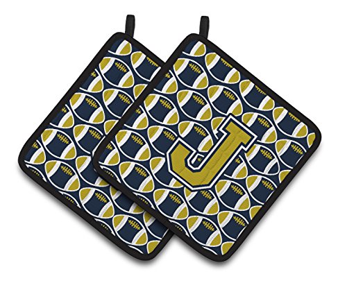 Caroline's Treasures Letter J Football Blue & Gold Pair of Pot Holders CJ1074-JPTHD, 7.5HX7.5W, Multicolor