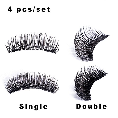 Magnetic False Eyelashes No Glue Fake Eyelashes Extensions 3D Reusable Natural Look, 4 Pieces/ set Lashes Set with Beautiful Case, Dual Magnets, for Deep Eyes Round Eyes, Ultra Lightweight & Long