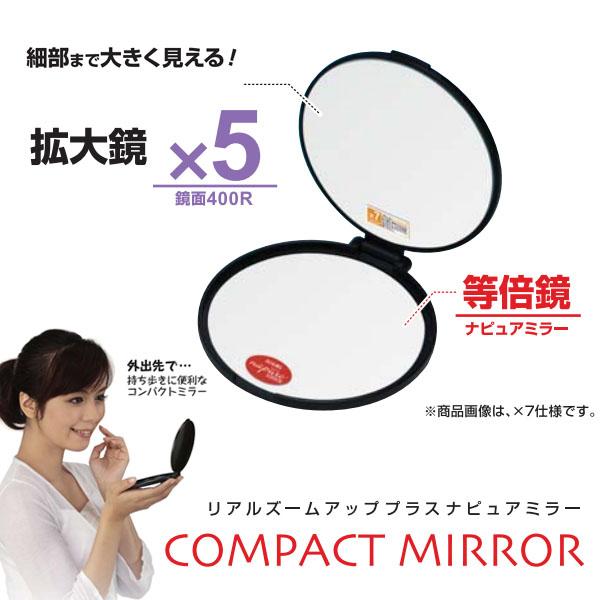 | 細部まで大きく見える拡大鏡はお肌のお手入れに最適!5倍ズームアップは、お肌・眉毛のお手入れ、アイメイクにオススメです!等倍鏡には、人気のナピュアミラーを採用。人から見た自分の本来の顔色を映すミラーです。ファンデーションを合わせたり、ポイントメイクをするのに最適!コンパクトタイプなので、持ち運びに便利! |