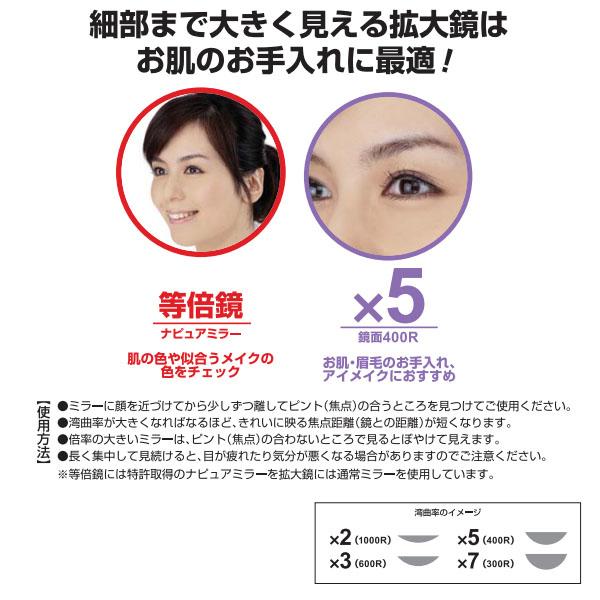 | 素材・材質 | 本体:ABS樹脂、ミラー:ガラスミラー(拡大鏡)・ナピュアガラスミラー(等倍鏡) |