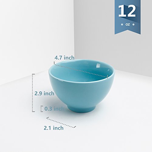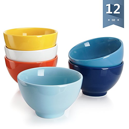 Sweese 1308 Porcelain Small Asian Bowls - 12 Ounce for Rice, Snack, Salad, Ice Cream - Set of 6, Assorted Colors