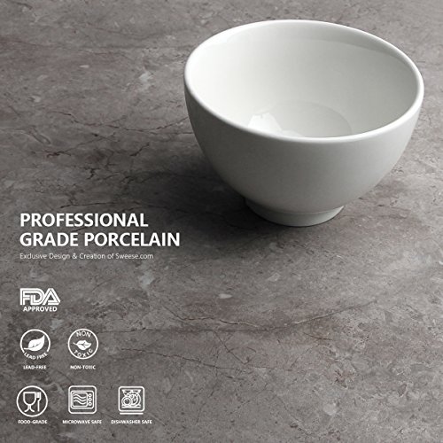 Sweese 1307 Porcelain Small Asian Bowls - 12 Ounce for Rice, Snack, Salad, Ice Cream - Set of 6, White