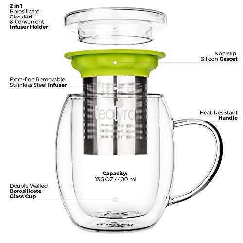 Tealyra - Venus Glass Cup Infuser - Double Wall Glass Tea Cup with Lid and Stainless Steel Infuser Basket - Perfect Tea Mug for Office and Home Uses for Loose Leaf Tea Steeping - 13.5-ounce