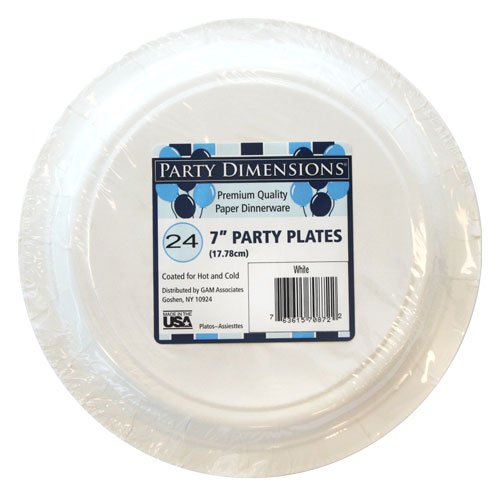 Party Dimensions 70872 24 Count Paper Plate, 7-Inch, White