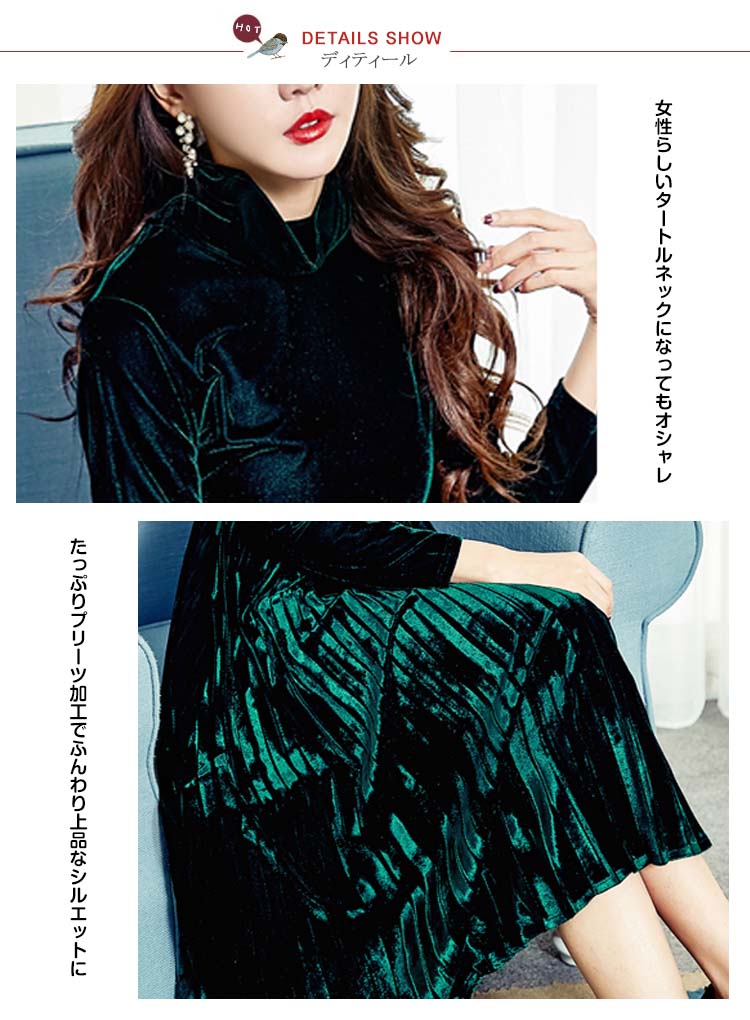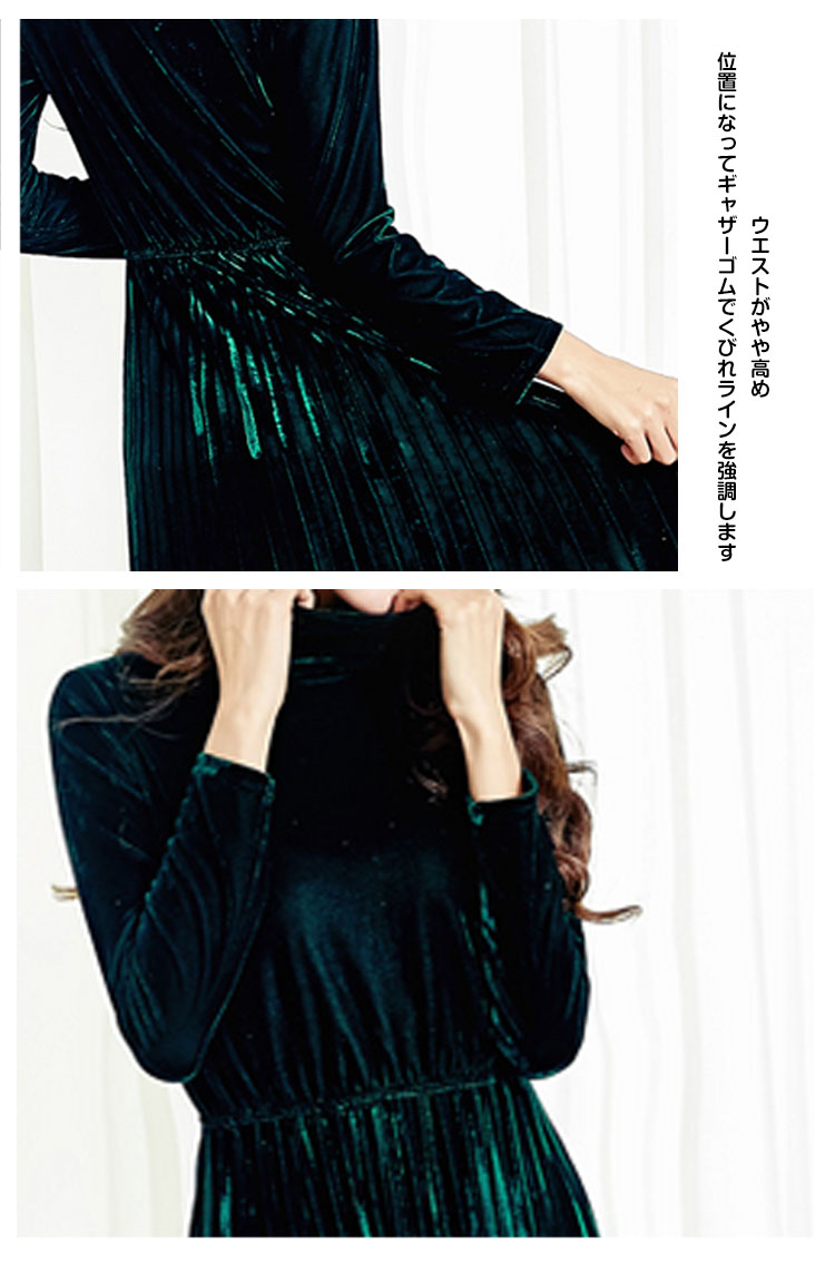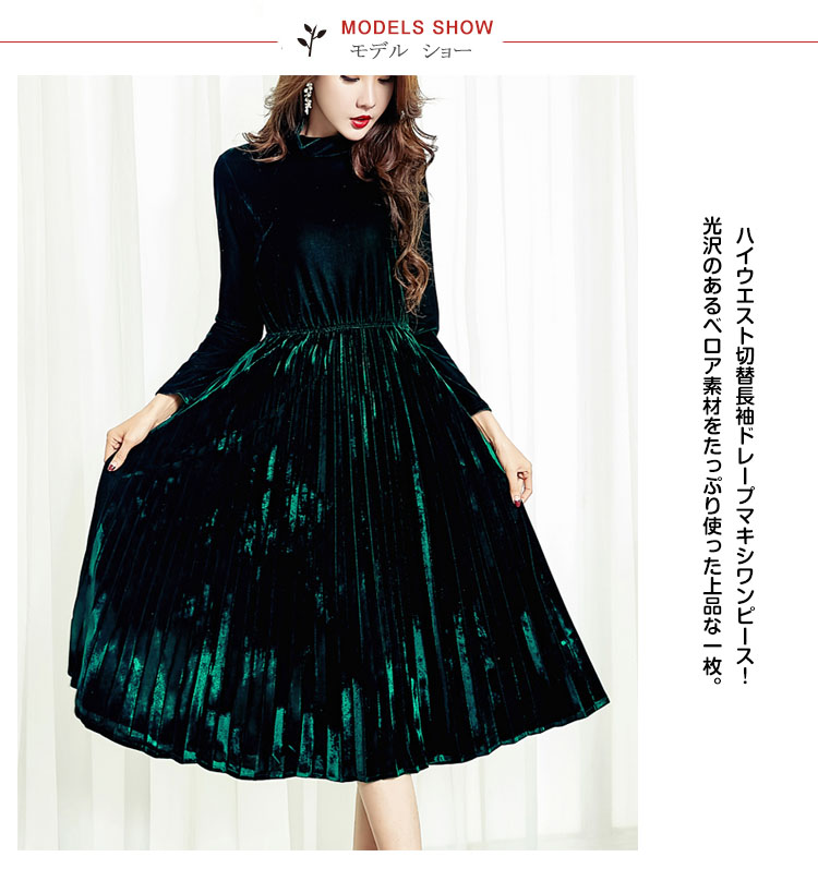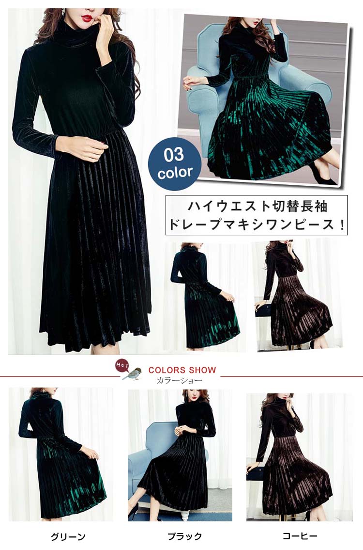 | ハイウエスト切替長袖ドレープマキシワンピース!光沢のあるベロア素材をたっぷり使った上品な一枚。ハイウェストデザインは脚を長く見せられる。すっきりしたAラインシルエットは女らしい、フェミニンな感じがセクシー。新鮮なタートルネックになって、寒い季節の寒気の侵入を妨げる。普段着からフォーマルシーンまでいろいろな場面に対応OK。上品なお色味なので様々な秋・冬のフォーマルシーンにおススメです♪ | |