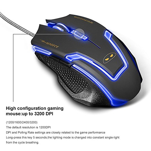 3200 DPI (1000/1600/2400/3200 4 level DPI adjustment).Polling Rate is 500Hz. two programmable side buttons.Cool 4 Colors LED Light with two modes: one is cycle breathing and other one is constant single-light modes.