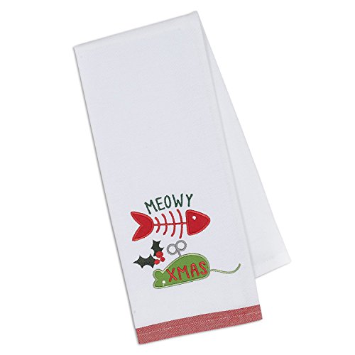 Meowy Christmas Mouse Fish Cat Toys 18 x 28 Inch Cotton Embroidered Kitchen Dish Towel