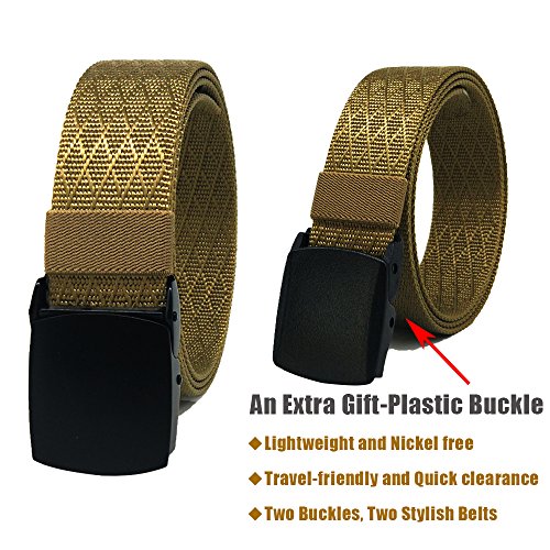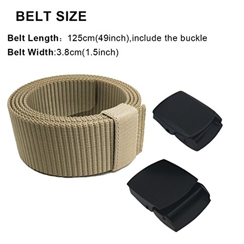 -. Feature : HEAVY DUTY BELT-Black tactical heavy duty metal buckle and durable nylon webbing which is strong enough to withstand about 500kg weight. Law enforcement belt for gun carry, patrol, garrison. Riggers belt for heavy duty work and outdoor hunting activities. / SAY NO TO LEATHER BELTS!-This 1.5 inch premium military style nylon belt is lightweigh, soft, close fitting, quickly dry and sweat absorption. Stylish enough for everyday use. / ONE SIZE WEB BELT-No longer limited to holes webbing, the new sizing method for 2017. Total length is 49 inch end to end, fit waist size 28"-42". Trimming the belt webbing to you wanted size. / NEW STYLE BELT ON AMAZON- Two methods of stylish weaving. Multi-colors for choosing. Hoanan tactical nylon webbing belt maybe is your new style. / EXTRA GIFT AND LIFETIME GUARANTEED-Hoanan nylon web belts all enclosed with an extra gift plastic buckle. It will save on a LOT of hassle if you go through metal detectors with this plastic buckle. Hope you will like our Hoanan belts. We are lifetime guaranteed.