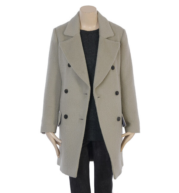 SISLEY, 빅테일러드 카라넥과 더블버튼 장식이 어우러져 포멀하고 고급스러운 멋을 자아내는 모직코트입니다