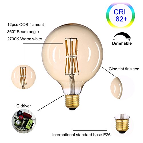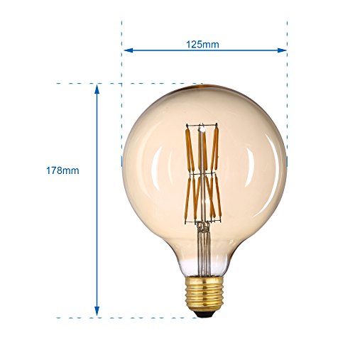 Energy star- The energy-efficient bulb use only 6 watts of power which is direct replacement for 60 watts incandescent. G125 LED bulbs produce 600 lumens of warm white light at 2700K color temperature.