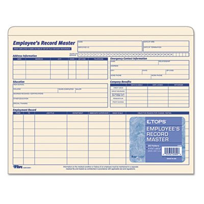-. Title : Employee Record Master File Jacket, 9 1/2 x 11 3/4, 10 Point Manila, 20/Pack, Sold as 1 Package