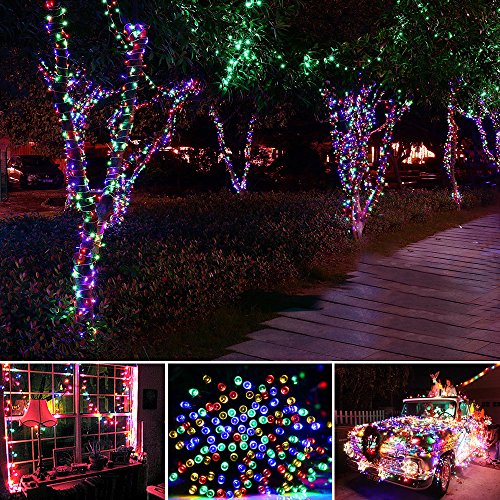 Qedertek Solar String Light, 33ft 100 LED 8 Modes Light Sensor Control Waterproof Decorative Ambiance Light For Patio, Lawn, Garden, Fence, Balcony, Party, Holiday, Christmas Decorations(Multicolor)
