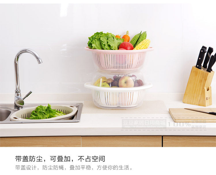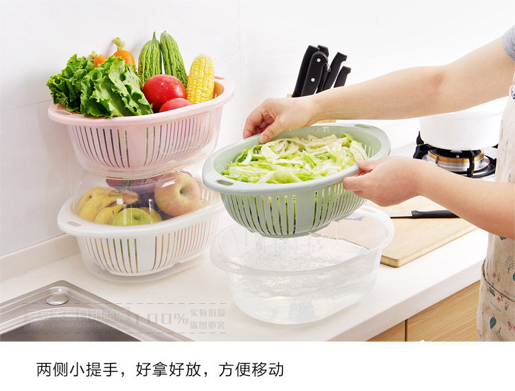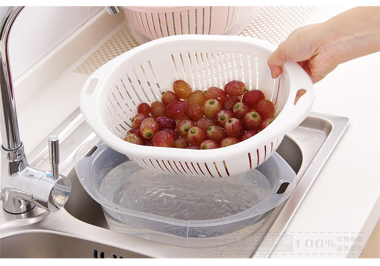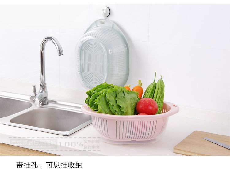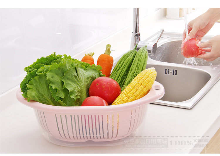Fresh color, PP material, double cover design, water drainage is very convenient! You can wash items, while blooming items, to facilitate your life. Large shape, can be washed long vegetables, fruits and so on.