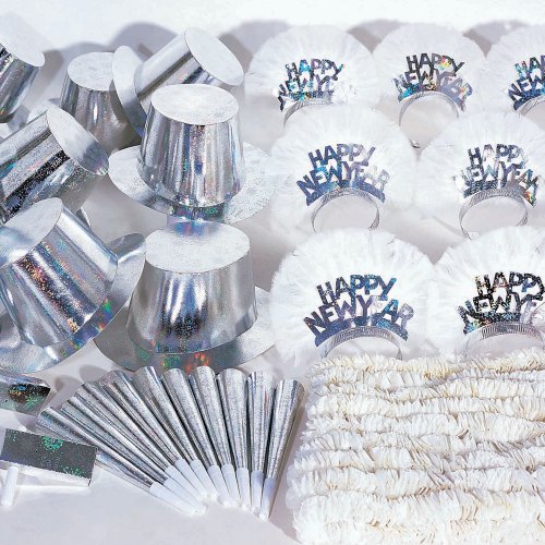 Hoffmaster K10002 60 Piece New Year's Silver Holographic Party Kit for a Party of 20, Assorted Pack (Case of 60)