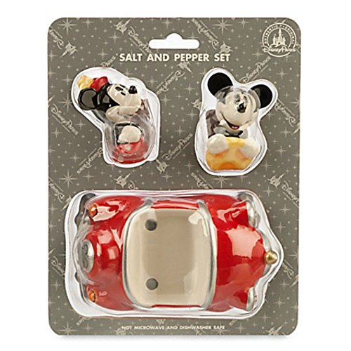 - Three-piece Salt & Pepper set - Car: 2 1/2'' H x 3'' W x 5'' L - Mickey and Minnie: 2 1/2'' H