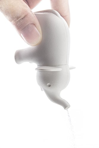 Cool Salt and Pepper Shakers Duo Elephant by Qualy Design Studio. White and Grey Shakers and Green Magnetic Stand Base. Cool Kitchenware. Will Make Unique Gift to Cooking Lovers.
