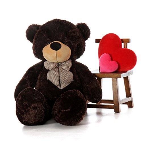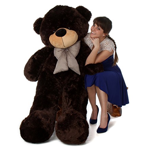 This mocha plush brown teddy bear is extremely soft and cuddly like a nice fluffy pillow, with plush big bear arms and legs. Sunny Cuddles has the cutest soft black nose and big brown life-like eyes. His big teddybear smile will warm your heart. This giant brown teddy bear is 5 feet tall, a life-sized teddy bear the size of a person. Be careful when you stand him up, because you might just fall back into your seat. Yes, he's a big teddy bear that makes a great classic teddy bear gift for any occasion. Sunny is one of the original teddy bear of the Giant Teddy brand teddybears. Made with high quality plush fur, and is stuffed with polyester fiberfill that will never ever clump over time. He can be your girlfriends teddy bear gift or buy this big bear gift to make a lasting impression. Send a big teddy bear on the next teddy bear delivery express to your loved one! Sunny Cuddles is just waiting to make someone you care about very happy! Giant Teddy quality is unmatched! For authenticity, make sure that you are purchasing the "real deal" from Amazon seller ***Giant Teddy***, made in USA, "shipped from and sold/fulfilled by Giant Teddy".If it doesn't say ***Giant Teddy*** at checkout, it isn't a genuine Giant Teddy product!Feature