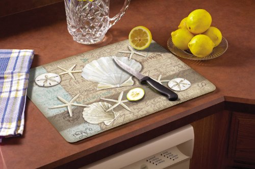 CounterArt Linen Shells Glass Cutting Board, 15 x 12 Inches