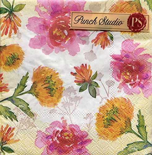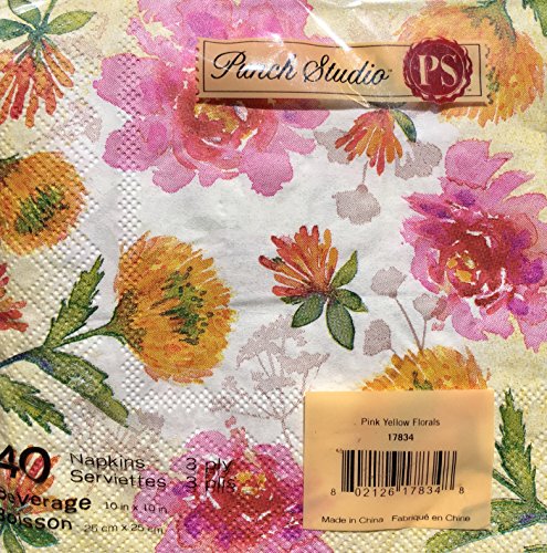 Punch Studio Set of 40 Cocktail Beverage Paper Napkins, Pink Yellow Florals 17834