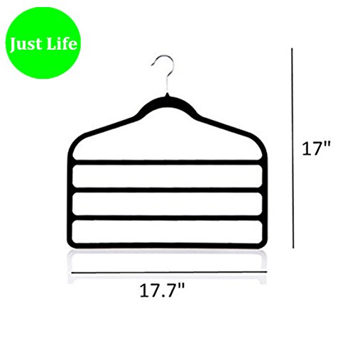-. Feature : 4 Non-Slip Pant Bars / Measures: 18x16.7x0.3" / No deformation with strong ability / Expands your closet space with slim design and tiered levels / Multi-function hanger, perfect for pants, scarf,belt,jewelry and other clothing accessories