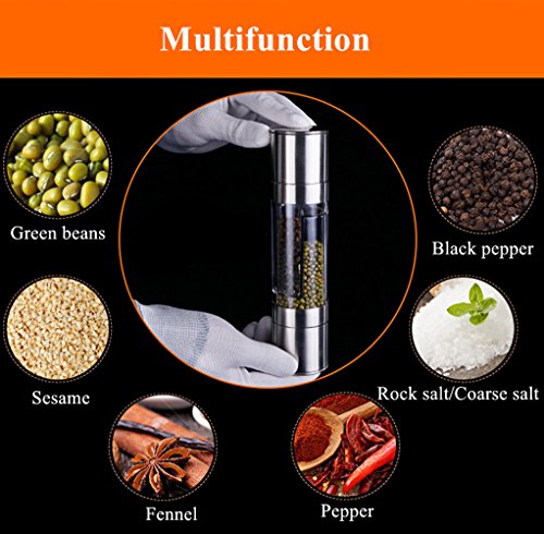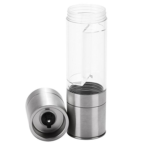 SAVE SPACE - 2 in 1 salt shaker & pepper mill will probably to be an excellent combo pepper mill accessory for your kitchen because the manual come with 2 independent and adjustable grinder at each unit and allows you grinding efficiently & effortlessly at once.