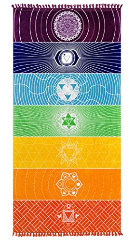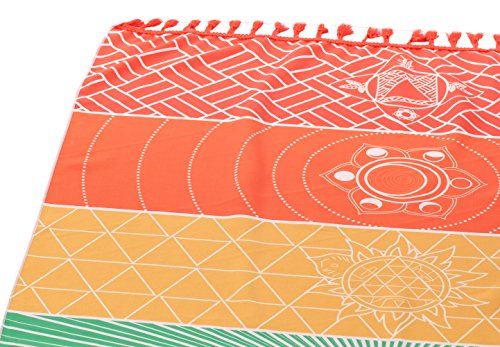 MAYWHEN Colorful Ultra-light Square Beach Towel Thin Polyester with Fringe Tassels Rainbow Totem Pattern Stylish Breathable Rug for Beach Terry Playroom Decor Multi 59 Inch