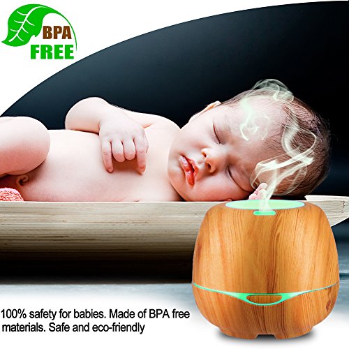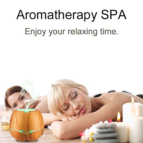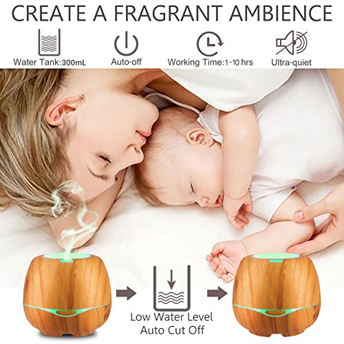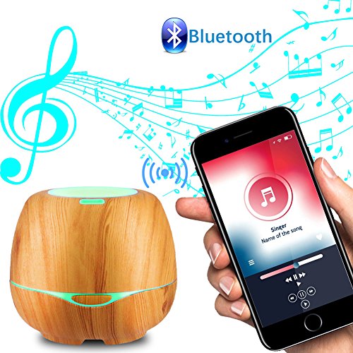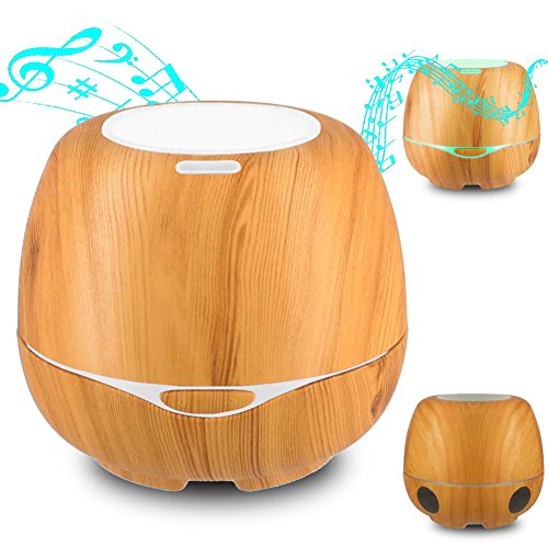iTavah Aromatherapy Essential Oil Diffuser with Bluetooth Speakers 300ml, Ultrasonic Cool Mist Humidifier with Adjustable Mist Mode,7 Color LED Light,Waterless Auto Shut-off,Wood Grain