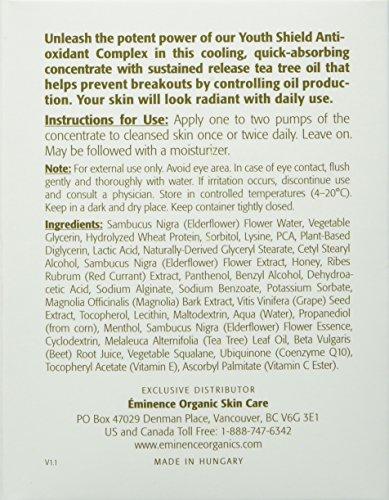 A silky and potent concentrate that contains our exclusive Youth Shield Antioxidant Complex that hydrates, invigorates and promotes the look of elasticity. This cooling, quick-absorbing concentrate contains sustained release tea tree oil that helps reduce the visible signs of breakouts. As a lightweight facial concentrate it can be worn on its own or underneath a moisturizer.Feature