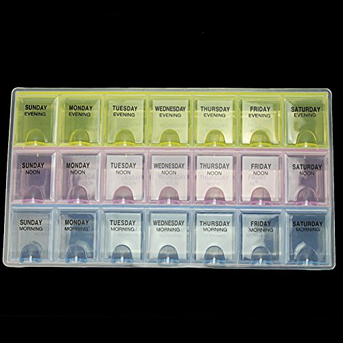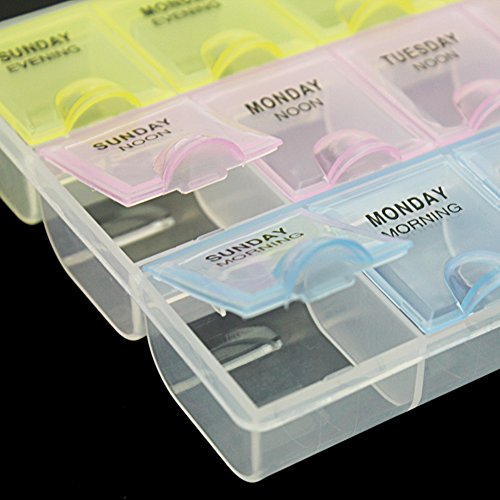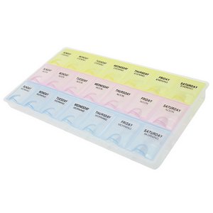 3 colors signs reminder you to take pills, such blue in morning, pink at noon, yellow at night.