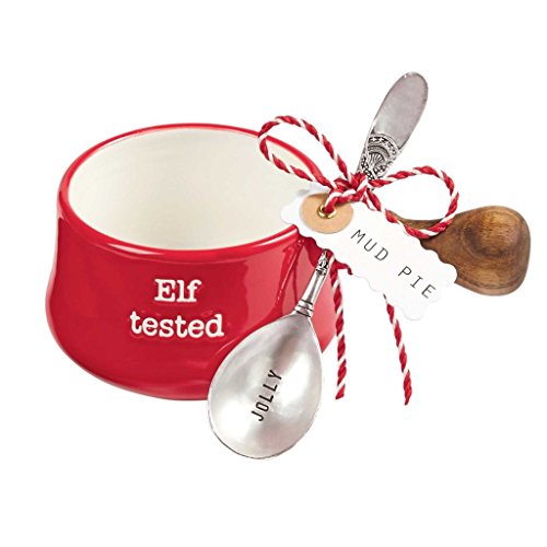 (Mud Pie)/Kitchen Dining/Tableware/DIRECT FROM USA/Mud Pie Circa Christmas Holiday Red Ceramic Dipping Pot Spoon Set (Elf)