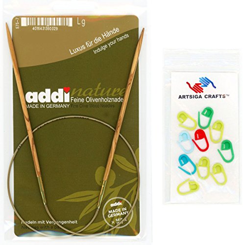 - Bundle includes 1 addi Olive Wood Circular 24-inch (60cm) Knitting Needle Size US 07 (4.50 mm) with 10 Artsiga Crafts Stitch Markers