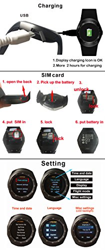 AMENON Bluetooth Smart Watch Wristwatch,Classical IPS Round Touch Screen Water Resistant Smartwatch Cellphone with SIM TF Card Slot Pedometer Fitness Tracker for Android Smart Phones (black)