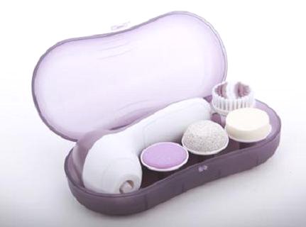 4-in-1 battery operated Electric Face & Body Spa Cleaning Set Features: 1. Restore soft and smooth skin 2. Exfoliate dead skin cells to reveal radiant and youthful skin 3. Reduce and erase fine lines & blackheads 4. Compact and light-weight 5. 2 settings: "Low" for daily cleaning, "High" for exfoliation 6. 4 attachments included: a) Soft Sponge: Gently massages your skin to increase skin elasticity and better facial product absorption. b) Soft Brush: Gently rotate to deep clean your skin. Used with your facial wash to get better results. c) Pumice: Gently exfoliates, polishes and removes rough callus skin on foot or elbow d) Nail polish: Smoothing and buffing nails Specifications: 1. Power: 2 "AA" batteries 2. Dimensions: 130 x 70 x 48 mm 3. Weight: 5oz 4. Operation condition: Temperature 10-40'C (50-104'F), Humidity 30%-90% 5. This product is not waterproof and can not be used in the shower