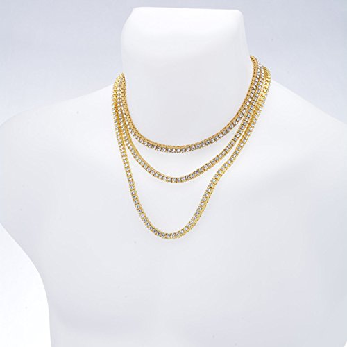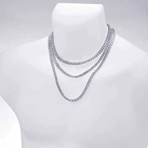 -. Title : 4 mm 16" 18" 22" Triple SET Tennis Chain Men's Fashion Lab Created Diamond Necklace