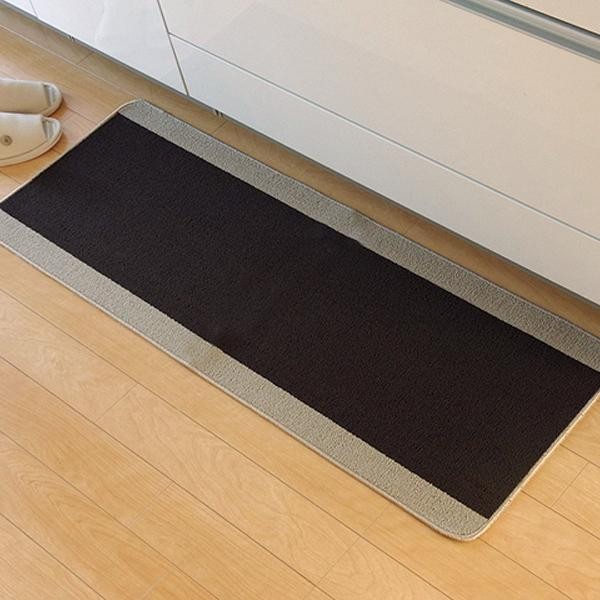 シンプルな無地のキッチンマットです。あえて厚さを薄めにすることにより、システムキッチンでも引っかかりにくい仕様にしています。裏面には滑りにくい加工を施しています。 |