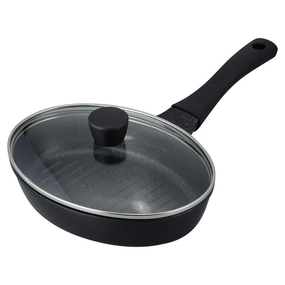 fk094igrjs焼き物などの調理におすすめです サイズ 18×24cm(持ち手含まず) 個装サイズ:38×26×9cm 重量 個装重量:1010g 素材・材質 本体:アルミニウム合金 底面:ステンレス鋼(総板厚3.5mm) 内面:ふっ素樹脂加工(マーブル) 外面:焼付塗装 蓋:強化ガラス 仕様 IH対応 製造国 中国 内面はこびりつきにくく、IHもOK 焼き物などの調理におすすめです