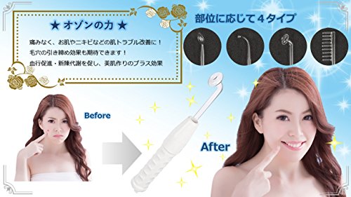 고주파 전류에 피부의 혈액 순환과 신진대사를 가속시키고, 피부의 수분 평형을 가져올 수 있습니다.머리 부분에 사용 하면 신경쇠약,실면 등에도 효과 있습니다.사용중은 형성한 오존은 살균력을 소유,피지선의 분비물을 제한하는 효과도 있습니다.사용 후는 모공의 안쪽의 얼룩이나 여분의 것은 형성하기 어려워 됩니다.4개의 전극 어댑터 부속!빗형 어댑터는 머리의 성장을 가속 시키는 효과가 있습니다 페이스는,둥근 끝과 약간 긴듯한 단2개의타입있고, 각각의 장면에서 활용으로 옵니다♪