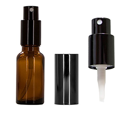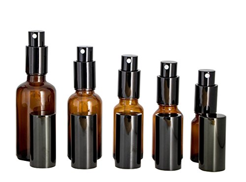 - Pack of 2 - Amber Glass Bottles with Black Fine Mist Sprayers and Dust Caps