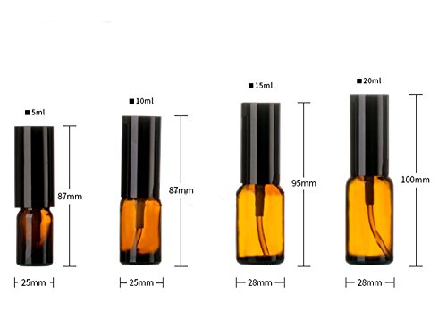 Furnido 5~30ml Refillable Amber Glass Spray Bottles Vial Aromatherapy cosmetic Liquid Water Perfume Essential Oil Pipette Atomizer Bottles with Black Lid...