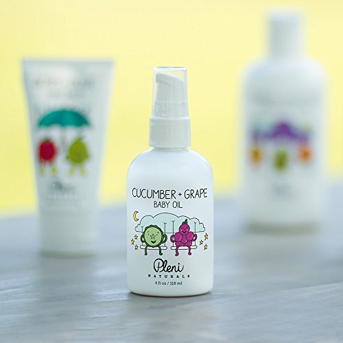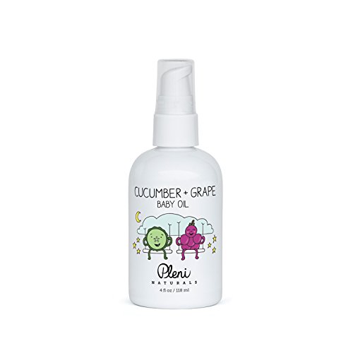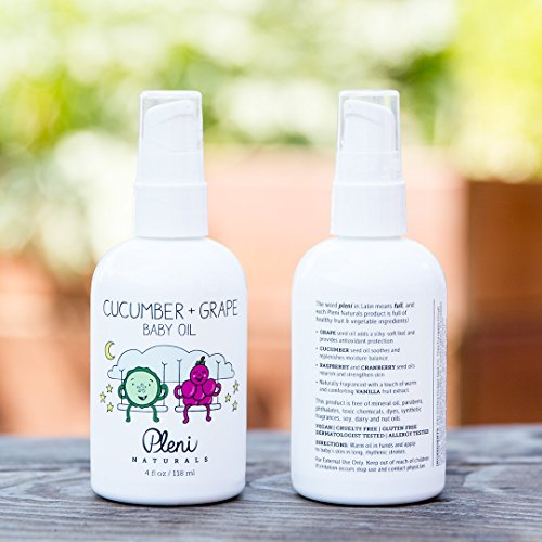 Pleni Naturals Cucumber + Grape Baby Oil 4oz with Organic Red Rapsberry Seed Oil, Dermatologist Tested and Safe for Sensitive Skin