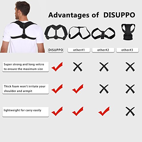 DISUPPO's Upper Back Posture Corrector Fits for 35-48 Inches in Chest Circumference. We know currently ,many people spend most of their time in the office and before the computer, they sometimes feel back sort and muscle tight in their upper back ,and maybe they suffer with Humpback problem or bad posture, shoulder or neck pain, lumbar disc herniation, fractured clavicle, postural kyphosis, recover after back surgery, therapy or spine related accident. So,DISUPPO designed a new product to help relieve your back healthy problem ?and help you keep good posture , you just need to wear the corrector 20 -30 minutes everyday, it will help improve the problem,both men and women ,adults and teenagers are suitable for it . Features: 1. The padded brace pulls back the shoulders and keep the clavicle to maintain proper posture; 2. Relieving the pain and discomfort caused by Kyphosis,sitting in the computer; 3. Freely do your daily work whether under or over clothes. Materials: soft foam, premium neoprene material Suitable Person: For parents: treatment the back pain and lumbar pain. For teenager: correct posture.For office persons, Supporting design helps correct poor posture Kindly tips: 1. First adapting days wear it for 15-25 minutes only, than add 20 minutes.Your posture will slowly adjust and build muscle memory for the right posture 2. We recommend wearing with a T-shirt or long sleeve otherwise it will be more comfortable. 3. Prevent over-tightening the corrector to cause excessive tension. Would you agree you need one of our posture correctors?? Could you see the benefits of a shoulder back posture brace? Do you think now is the right moment to make a change? If the answer is YES, What are you waiting for? Order the Posture Back Corrector NOW! 0 |