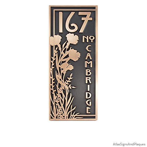 -. Title : Vertical Poppy Address Plaque 7.5x18 - Raised Bronze Patina Coated