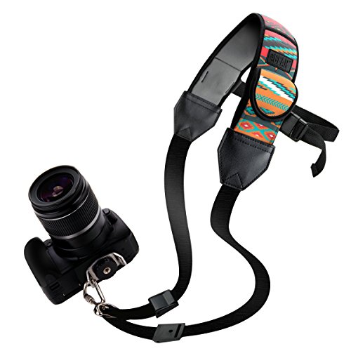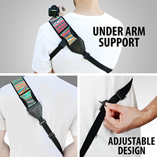 TrueSHOT Camera Neck Strap Sling with Adjustable Neoprene (Aztech) and Gliding Buckle by USA GEAR - Works with Canon , Fujifilm , Nikon , Olympus , Panasonic , Pentax , Sony and More Cameras