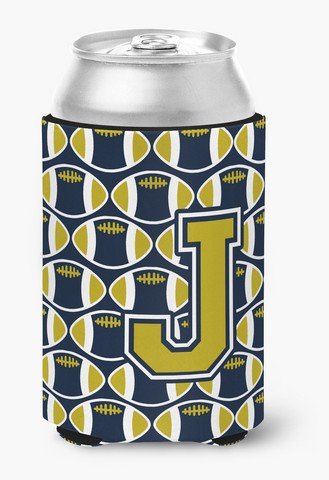 Caroline's Treasures CJ1074-JCC Letter J Football Blue and Gold Can or Bottle Hugger, Multicolor