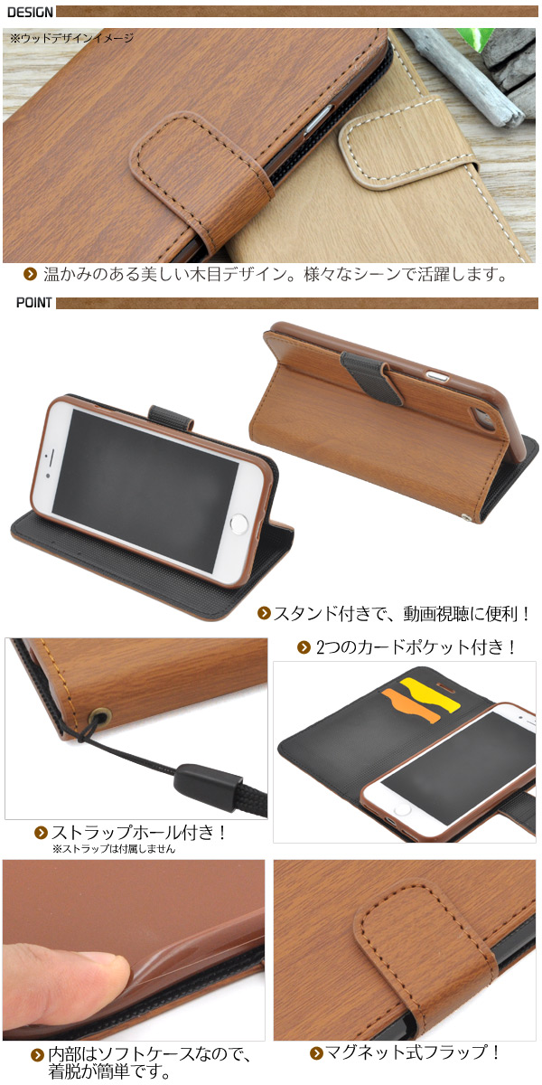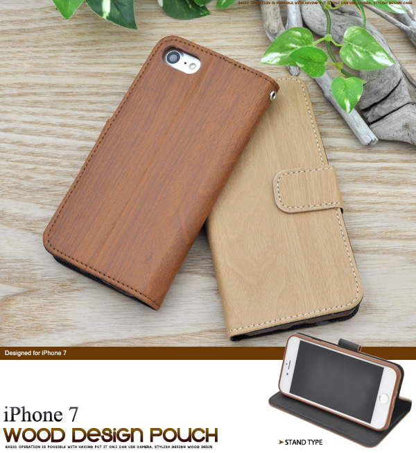 iPhone 7用ウッドデザインスタンドケースポーチ