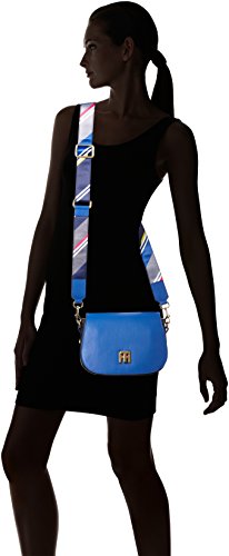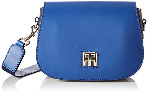 Tommy Hilfiger Damen TH Twist Saddle Bag Leather Hella Stripe Umhangetasche, Blau (Olympian Blue), 7 x 16 x 22.5 cm