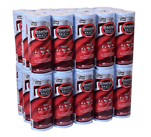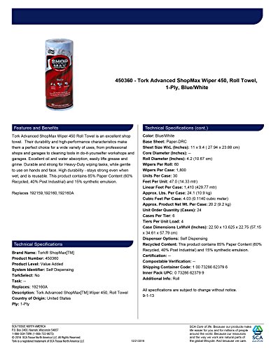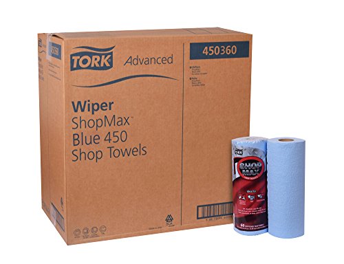 Tork Advanced 450360 ShopMax Wiper 450, Roll Towel, 1-Ply, 11" Width x 9.4" Length, Blue/White (Case of 30 Rolls, 60 per Roll, 1800 Towels)