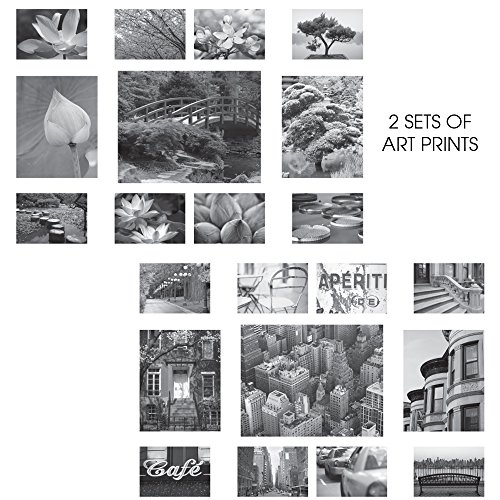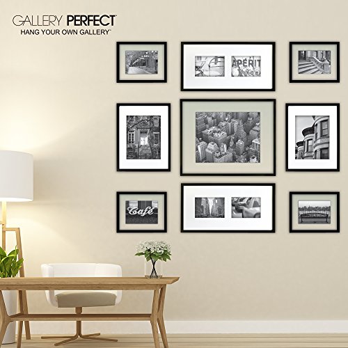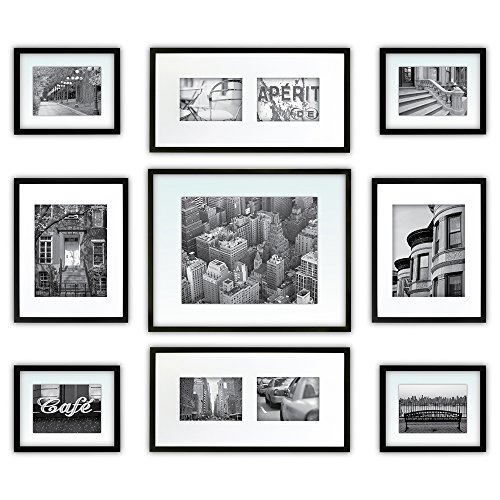 GALLERY PERFECT 9 Piece Black Wood Photo Frame Wall Gallery Kit #14FW1020. Kit Includes: Frames, Wall Template and Decorative Prints