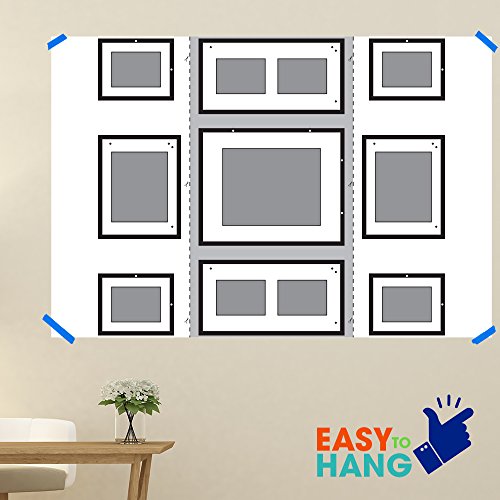 Easy-to-Hang wall template with multiple layout options to help you build the perfect gallery wall and saves the hassle of measuring and framing