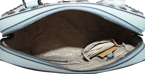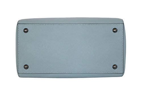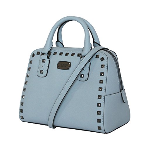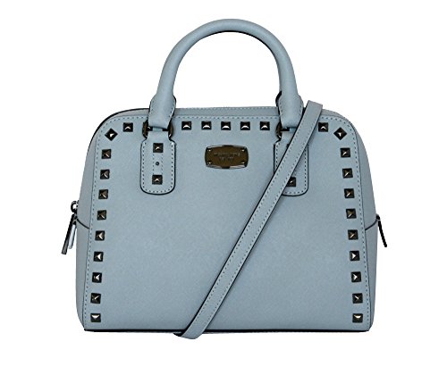 -. Brand : MICHAEL -. Color : PALE BLUE -. Department : womens -. EAN : 0190049412022 -. Feature : LEATHER AUTHENTIC LOGO TOP ZIP CLOSURE ADJUSTABLE STRAP 9.5"X7"X5" SILVER TONE HARDWEAR. COLOR PALE BLUE -. ProductGroup : Shoes -. ProductTypeName : HANDBAG -. Size : 9.5"X7"X5" -. Title : MICHAEL Women's Saffiano stud SMALL Satchel LEATHER HANDBAG -. UPC : 190049412022